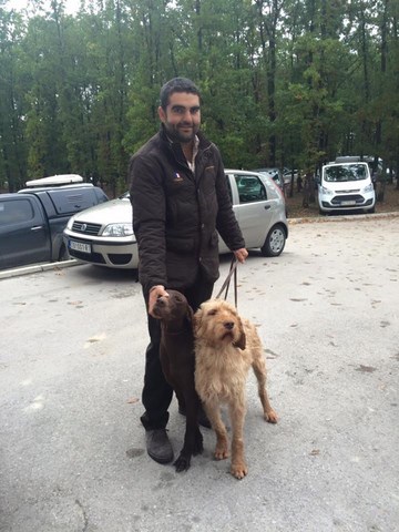 3ème jour et le dernier de cette Coupe d'Europe, les calculs sont serrés et chacun compte le miminum à faire aujourd'hui pour gagner, mais avec beaucoup de fair play, on voit rarement cela en France ! Aldas change de terrain et de jury, elle attaque sur un terrain très sale qui nous laisse un peu perplexe ! En moins de 20 secondes, elle prend un point sur un faisan sauvage, parfaitement sage, Luciano la raccroche et va serrer les fesses les 14 minutes 30 qu'il reste du parcours ! Aldas est très énergique et autoritaire, elle explore parfaitement son terrain, ce 1er oiseau pris dans la minute l'a un peu énervée !!! En fin de parcours, elle prendra un dernier point .... sur 3 chevreuils cette fois ! Sacrée Dadach, il reste le rapport à froid à faire mais qui sera fait dans les règles de l'art. La concurrence est rude aujourd'hui et elle fera un 3ème Excellent qui va lui suffir pour être :