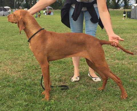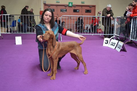 CACS en classe intermédiaire pour Tiszataji Vadazs Gyongy dite Nappy qui est le coup de coeur du juge pour sa couleur, sa tête et sa conformation mais Madame avait décidé de mal courir aux allures et c'est Maps qui lui vole le meilleur de race !! Peu importe, un grand merci à leur éleveuse Melinda Godo pour la qualité de ces 2 chiens qui nous ont réconciliés avec les poil ras ....