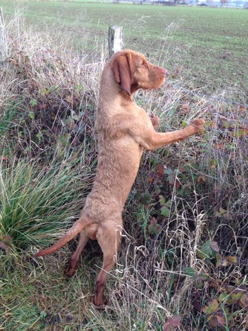 Edes (Zoldmali Zafir), l'indiscipliné de la bande, bien plus habituée des rings d'expositions avec sa maman et à la chasse sans contrainte, est bien plus mauvaise élève et il faut revoir les sagesses, même Enzo s'est mis à la faire travailler : il ne l'envoie désormais rapporter la balle qu'il lui a lancé qu'à l'ordre et Edes obéit sans broncher, un vrai travail de famille qui va payer puisqu'elle nous décroche un 3ème Excellent qui lui permet l'accès à la cotation 4 de lice recommandée !! Bravo Dédés !!!