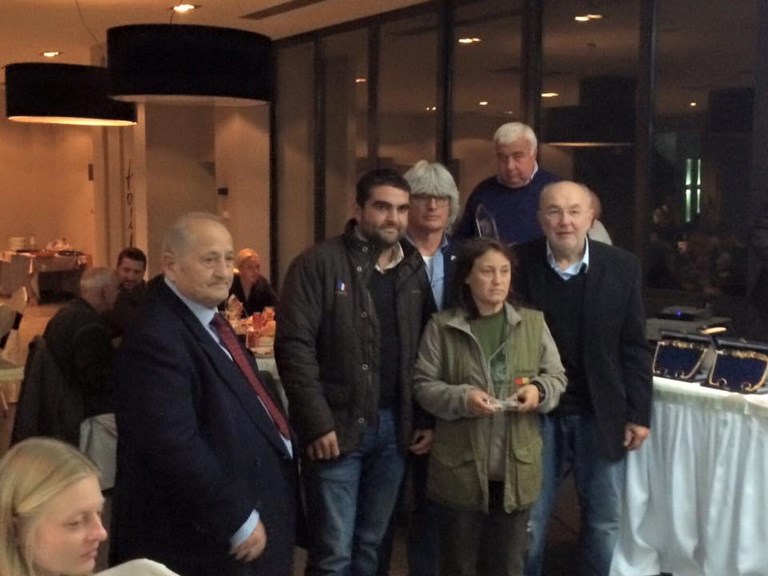 3ème jour et le dernier de cette Coupe d'Europe, les calculs sont serrés et chacun compte le miminum à faire aujourd'hui pour gagner, mais avec beaucoup de fair play, on voit rarement cela en France ! Aldas change de terrain et de jury, elle attaque sur un terrain très sale qui nous laisse un peu perplexe ! En moins de 20 secondes, elle prend un point sur un faisan sauvage, parfaitement sage, Luciano la raccroche et va serrer les fesses les 14 minutes 30 qu'il reste du parcours ! Aldas est très énergique et autoritaire, elle explore parfaitement son terrain, ce 1er oiseau pris dans la minute l'a un peu énervée !!! En fin de parcours, elle prendra un dernier point .... sur 3 chevreuils cette fois ! Sacrée Dadach, il reste le rapport à froid à faire mais qui sera fait dans les règles de l'art. La concurrence est rude aujourd'hui et elle fera un 3ème Excellent qui va lui suffir pour être :