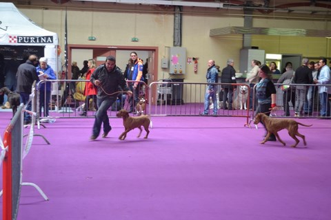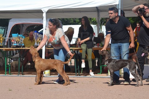 CACS en classe intermédiaire pour Tiszataji Vadazs Gyongy dite Nappy qui est le coup de coeur du juge pour sa couleur, sa tête et sa conformation mais Madame avait décidé de mal courir aux allures et c'est Maps qui lui vole le meilleur de race !! Peu importe, un grand merci à leur éleveuse Melinda Godo pour la qualité de ces 2 chiens qui nous ont réconciliés avec les poil ras ....