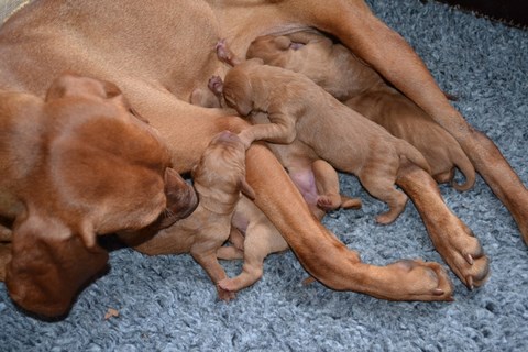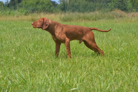 Edes (Zoldmali Zafir), l'indiscipliné de la bande, bien plus habituée des rings d'expositions avec sa maman et à la chasse sans contrainte, est bien plus mauvaise élève et il faut revoir les sagesses, même Enzo s'est mis à la faire travailler : il ne l'envoie désormais rapporter la balle qu'il lui a lancé qu'à l'ordre et Edes obéit sans broncher, un vrai travail de famille qui va payer puisqu'elle nous décroche un 3ème Excellent qui lui permet l'accès à la cotation 4 de lice recommandée !! Bravo Dédés !!!
