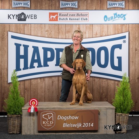 Et le comble pour certains mais bien une réalité au vu du nombre de points, elle gagne le challenge Field-expo 2014 du club qui récompense le beau et bon vizsla de l'année ... cela la conduit au Salon Agricole le 24 février prochain pour la 3ème année consécutive ... les conditions de sélection avaient pourtant changé car la participation d'Aldas dérange mais elle a bel et bien gagné sa place et ne la cédera pas ! Elle a largement fait la promotion de sa race sur les terrains de fields cette année : Championne 4 cases, Championne d'Europe de FT, Championne de gibiers naturels, CACIT et RCACIT en field ouvert .... et sur les rings: Championne internationale de beauté et d'expositions, Championne IB/IT ... bref difficile de faire mieux non ????
